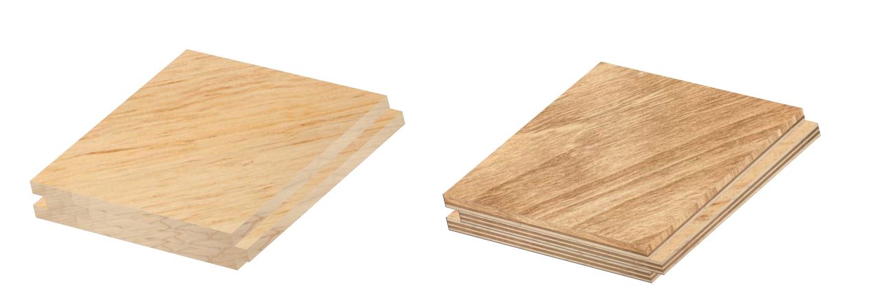 The top layer is exactly the same as solid wood, but the birch plywood increases stability — meaning it is not as prone to shrinking or warping with changes in environmental conditions as much as solid wood is.