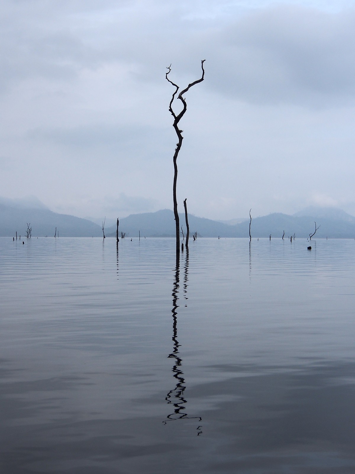 Trees over 100 feet tall sit beneath the water’s surface, sometimes with telltale branches peaking above.