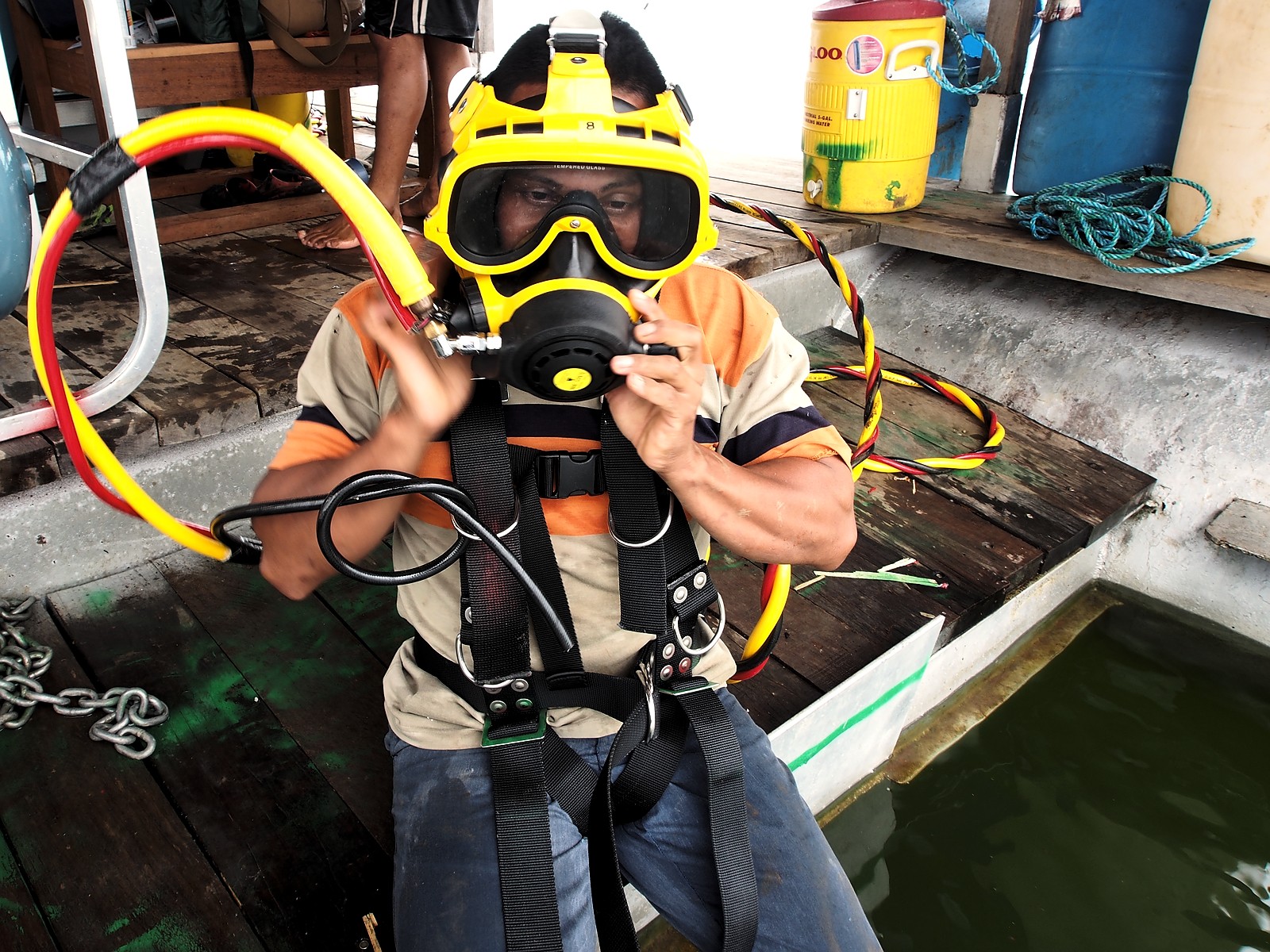 Divers are sent out in barges with specialist underwater harvesting tools.