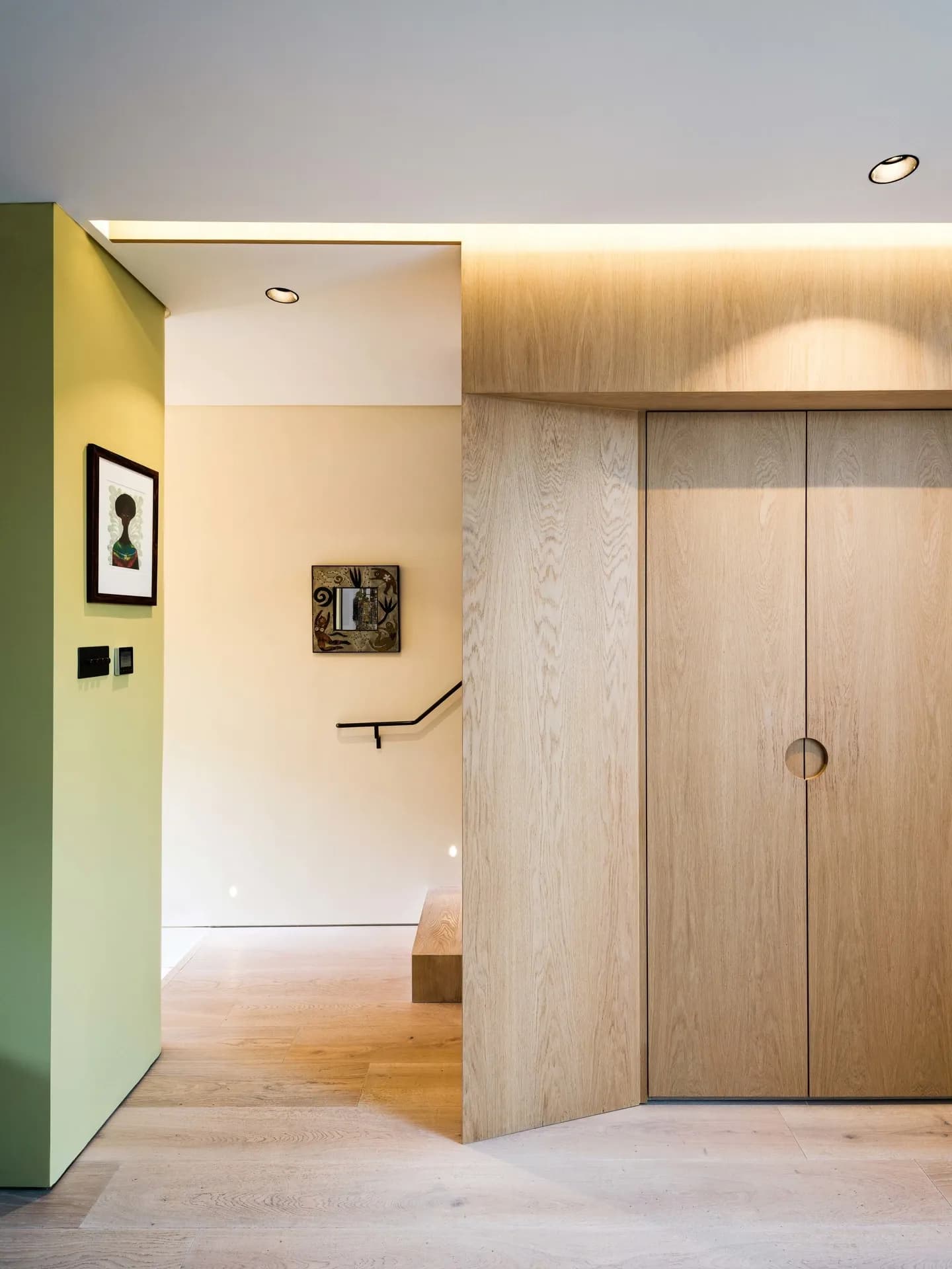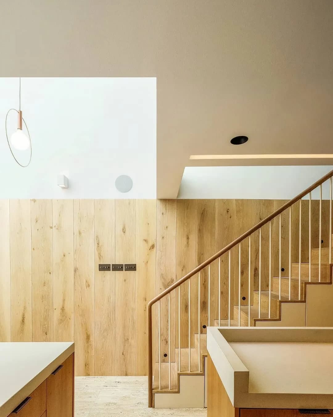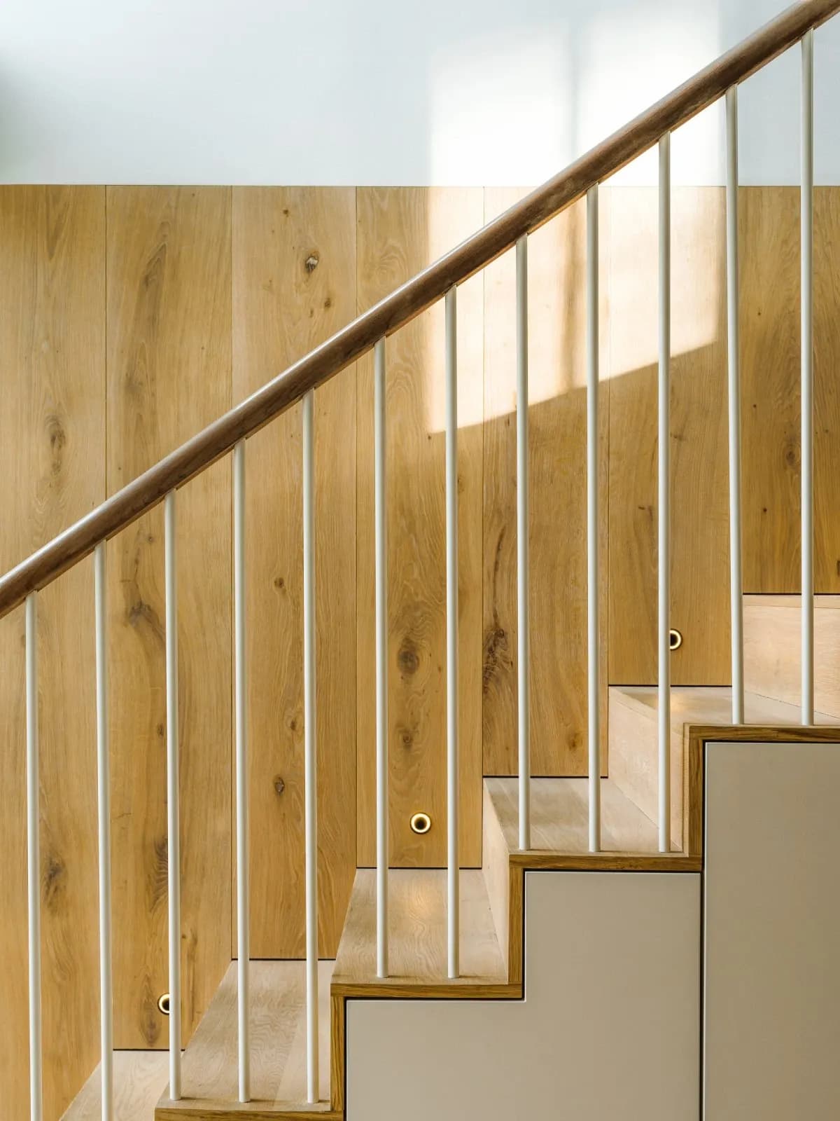 A purposeful counterpoint comes in the form of Douglas Fir, used along the stair run. Strong and durable, it introduces a new tone and grain that adds both depth and architectural definition to the family home.