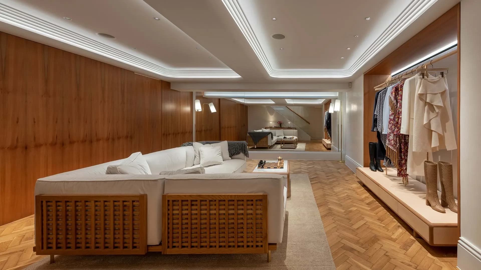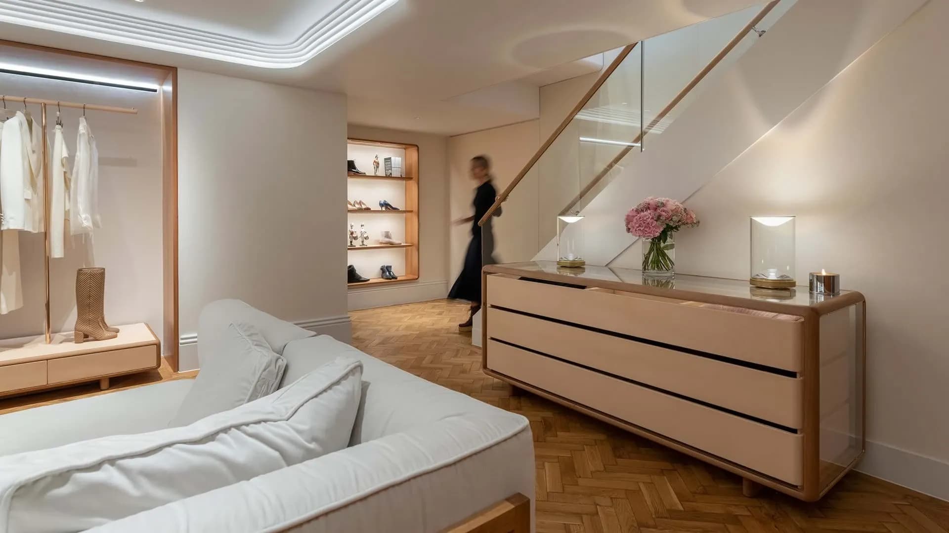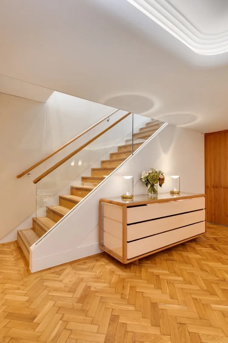 In the heart of Mayfair, Gabriela Hearst’s London flagship — designed by Foster + Partners — pairs contemporary restraint with a sense of lasting craft. To ground the space, we supplied 100 m² of reclaimed English oak in herringbone, salvaged from an officer’s mess in Shrewsbury and restored by hand. Its quiet patina, shaped by decades of prior use, brings a lived-in refinement beneath the crisp minimalism of the interior, allowing the textures, light and tailoring of the collection to sit on a floor with history in its grain.