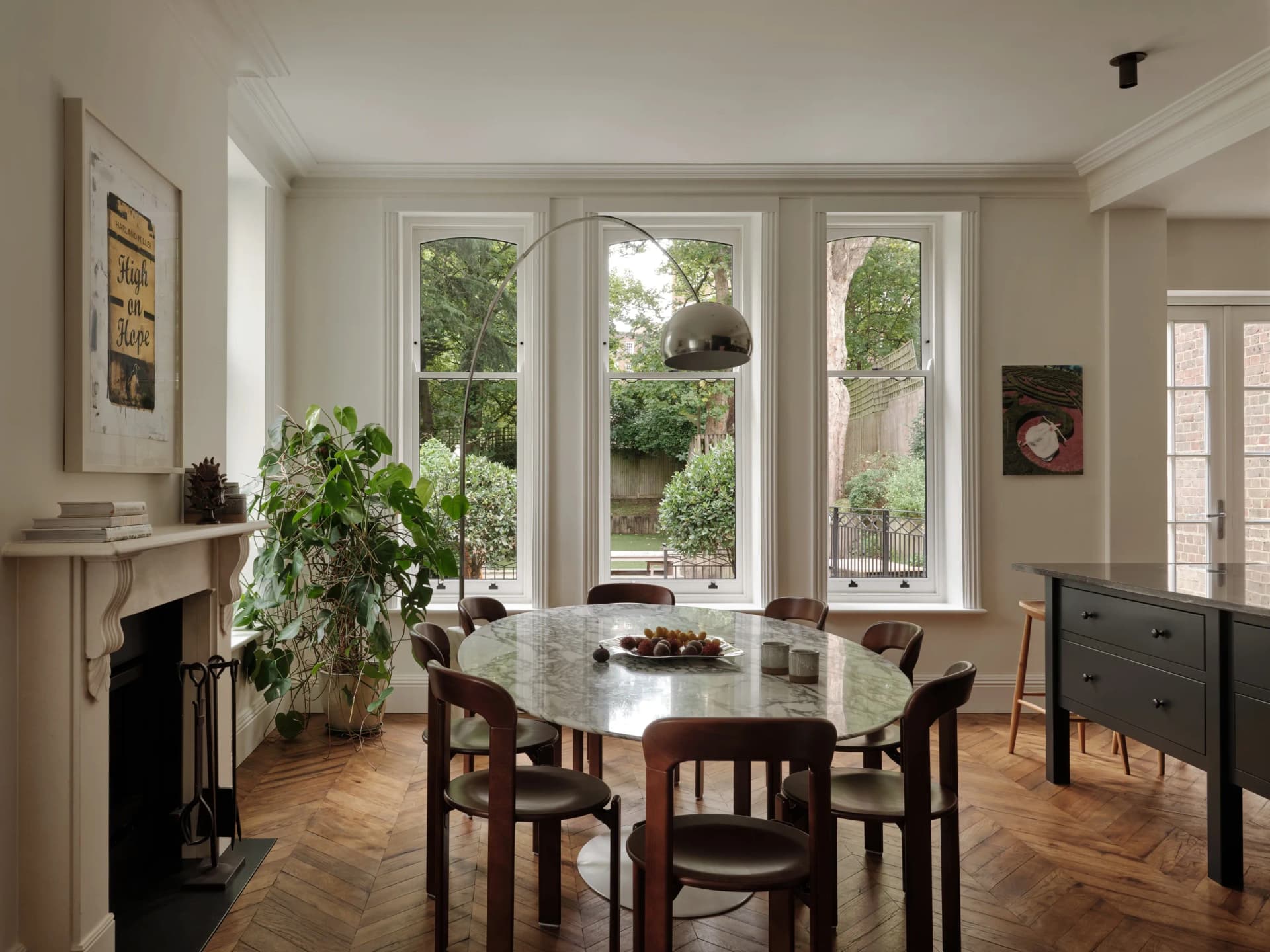 An imposing 19th-century villa overlooking Highgate, once stripped of its spirit through subdivision and neglect, has been thoughtfully reimagined into a home of warmth and quiet character. Working alongside Tom Rutt Studio and client Vanina Kovarski, the project restores a sense of presence and ease within the grand architectural envelope — from reconfigured staircases to art-led interiors that soften the formality of the original structure.