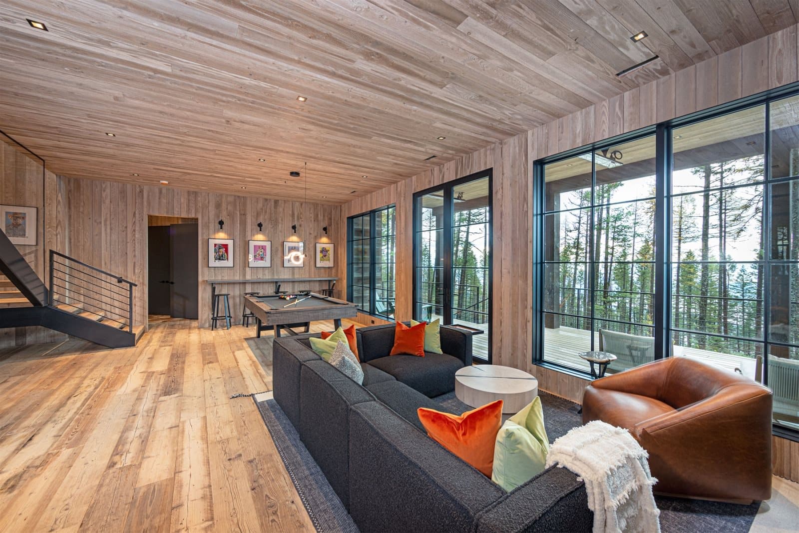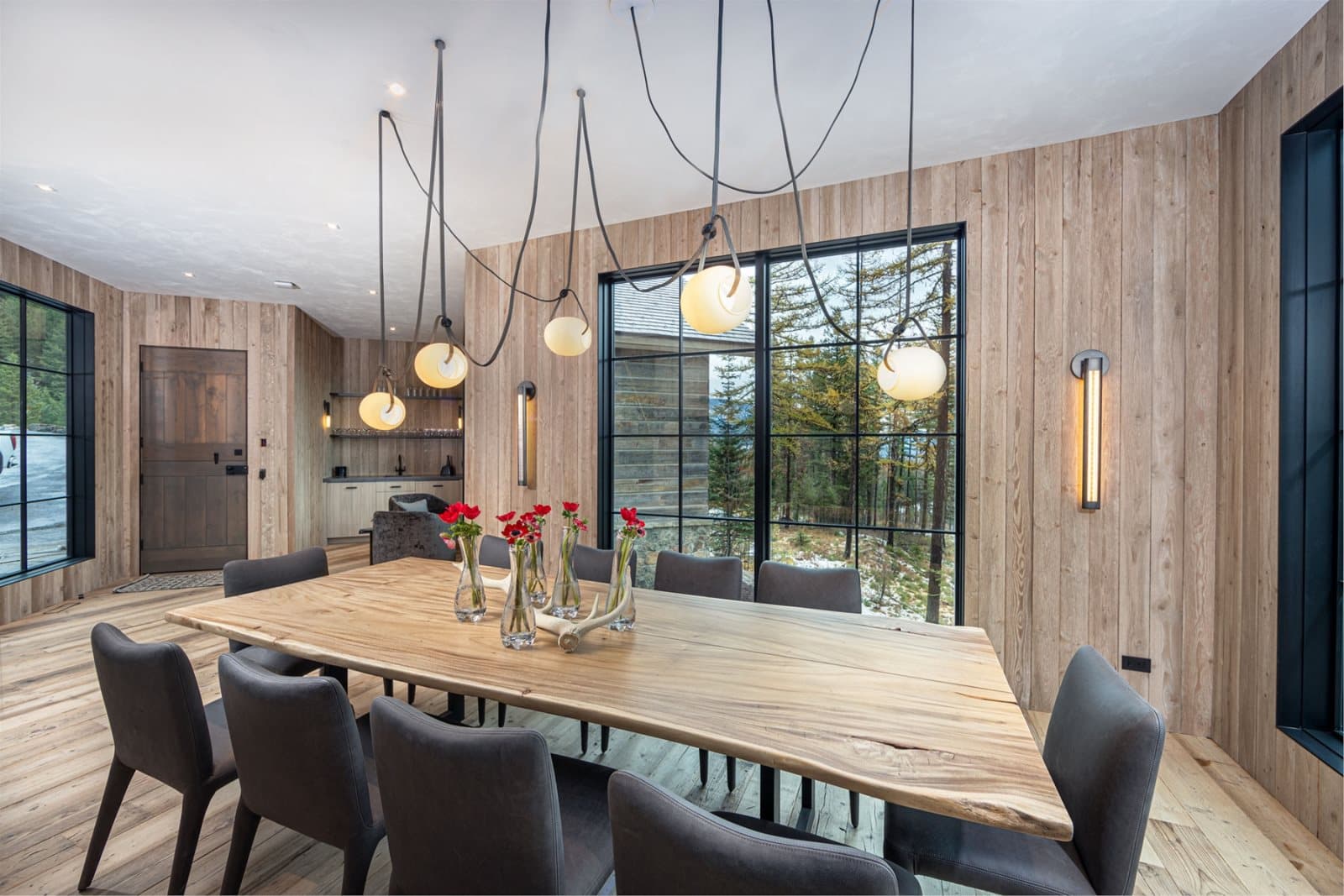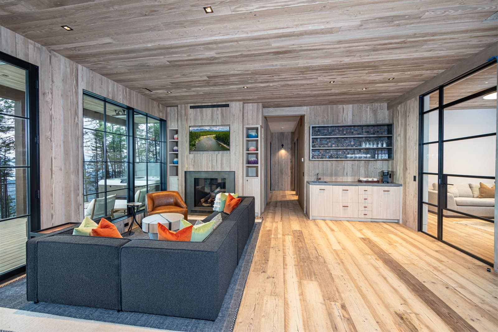 Imagine stepping into this Montana chalet where open volume and architectural clarity meet the hush of the mountains. For this transatlantic commission, we supplied unfinished reclaimed Mid-Century Pine — timber with roots in Northern England’s industrial past — to be finished on site in collaboration with Lori Faison (@lori_faison_interiors) in an aged white patina. The result does not merely occupy the interior; it answers the landscape outside, a quiet echo of the Montana peaks translated into timber.