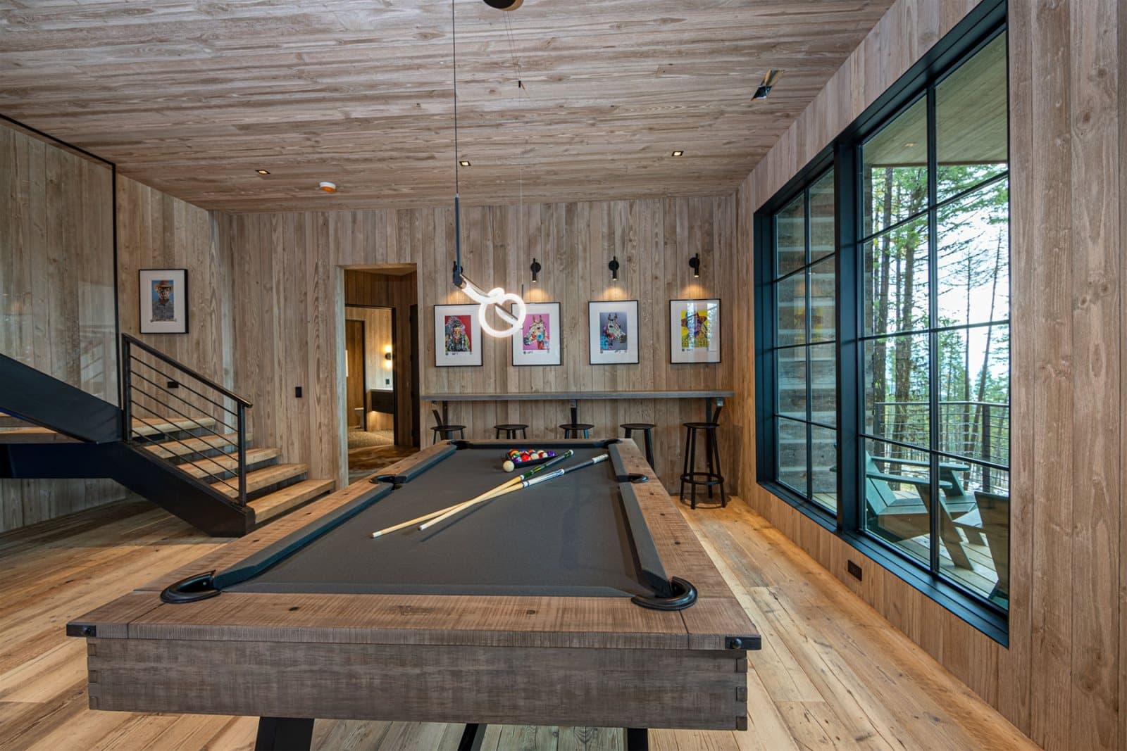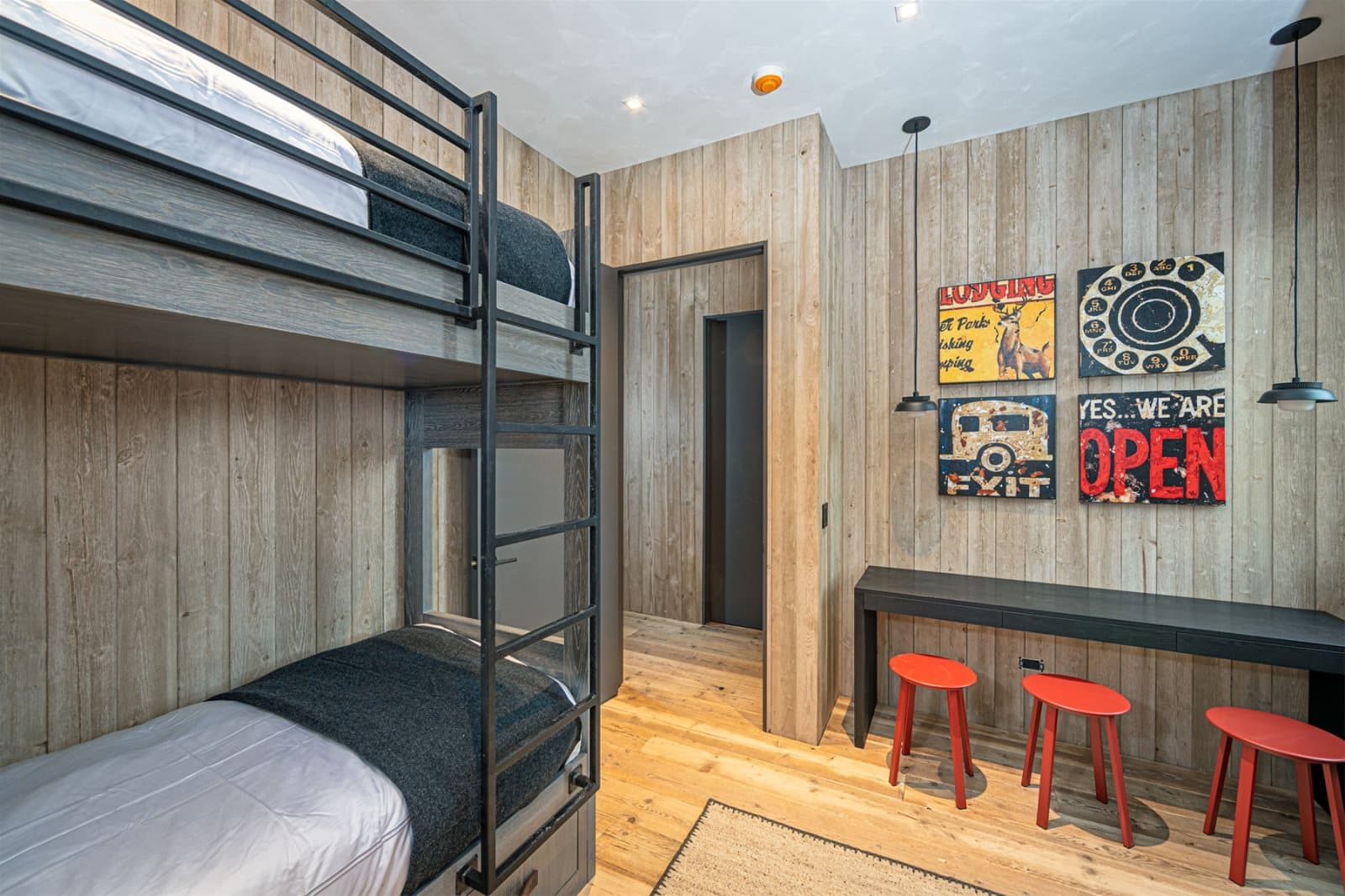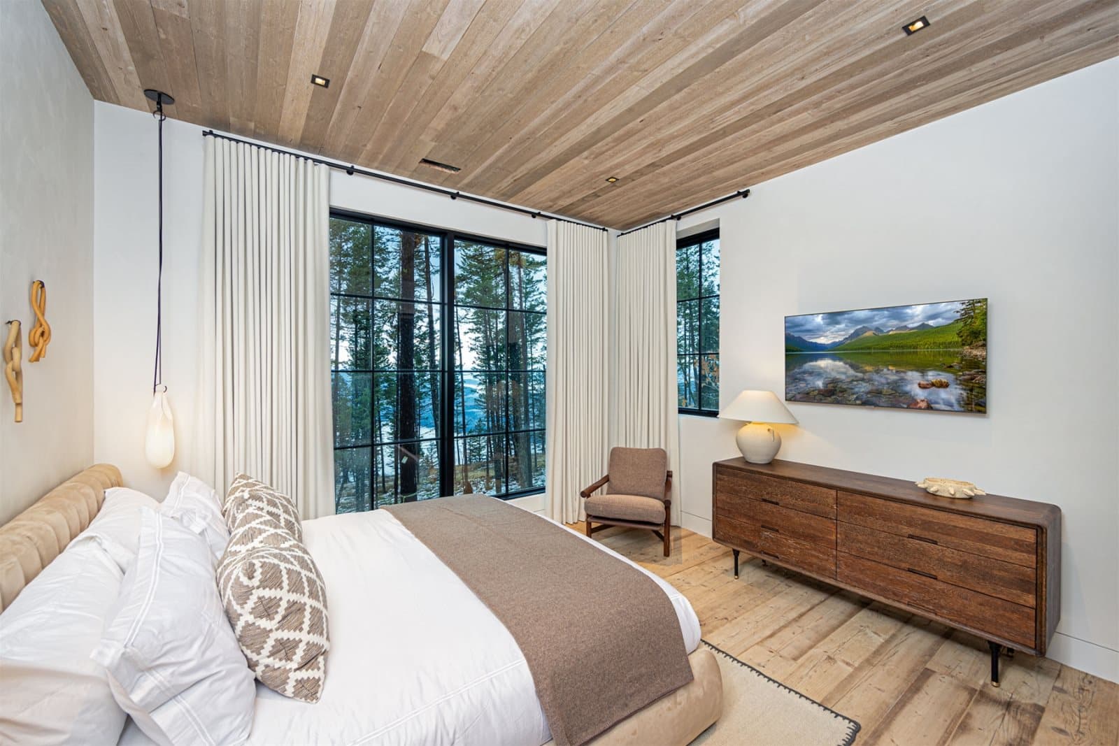 Imagine stepping into this Montana chalet where open volume and architectural clarity meet the hush of the mountains. For this transatlantic commission, we supplied unfinished reclaimed Mid-Century Pine — timber with roots in Northern England’s industrial past — to be finished on site in collaboration with Lori Faison (@lori_faison_interiors) in an aged white patina. The result does not merely occupy the interior; it answers the landscape outside, a quiet echo of the Montana peaks translated into timber.