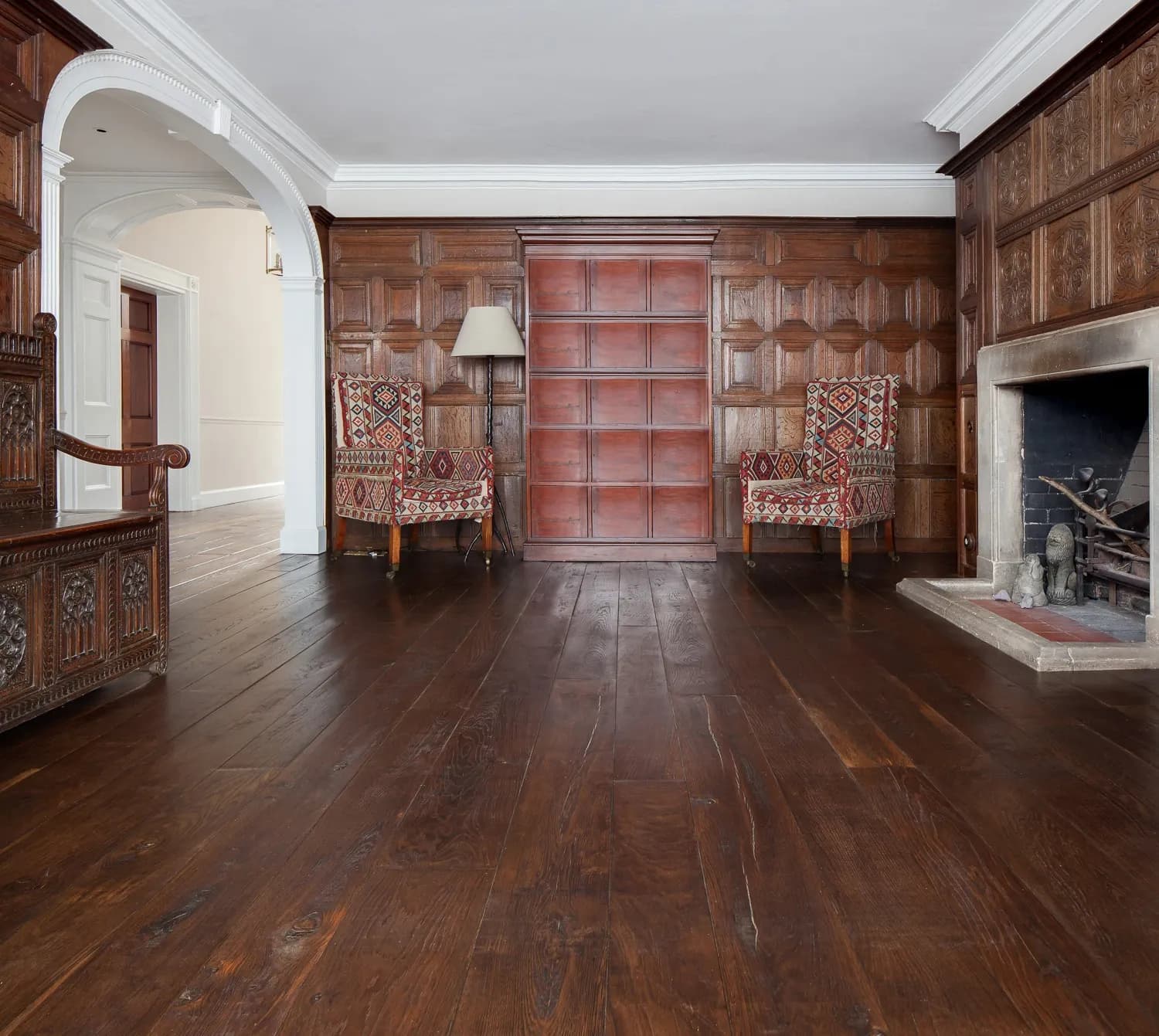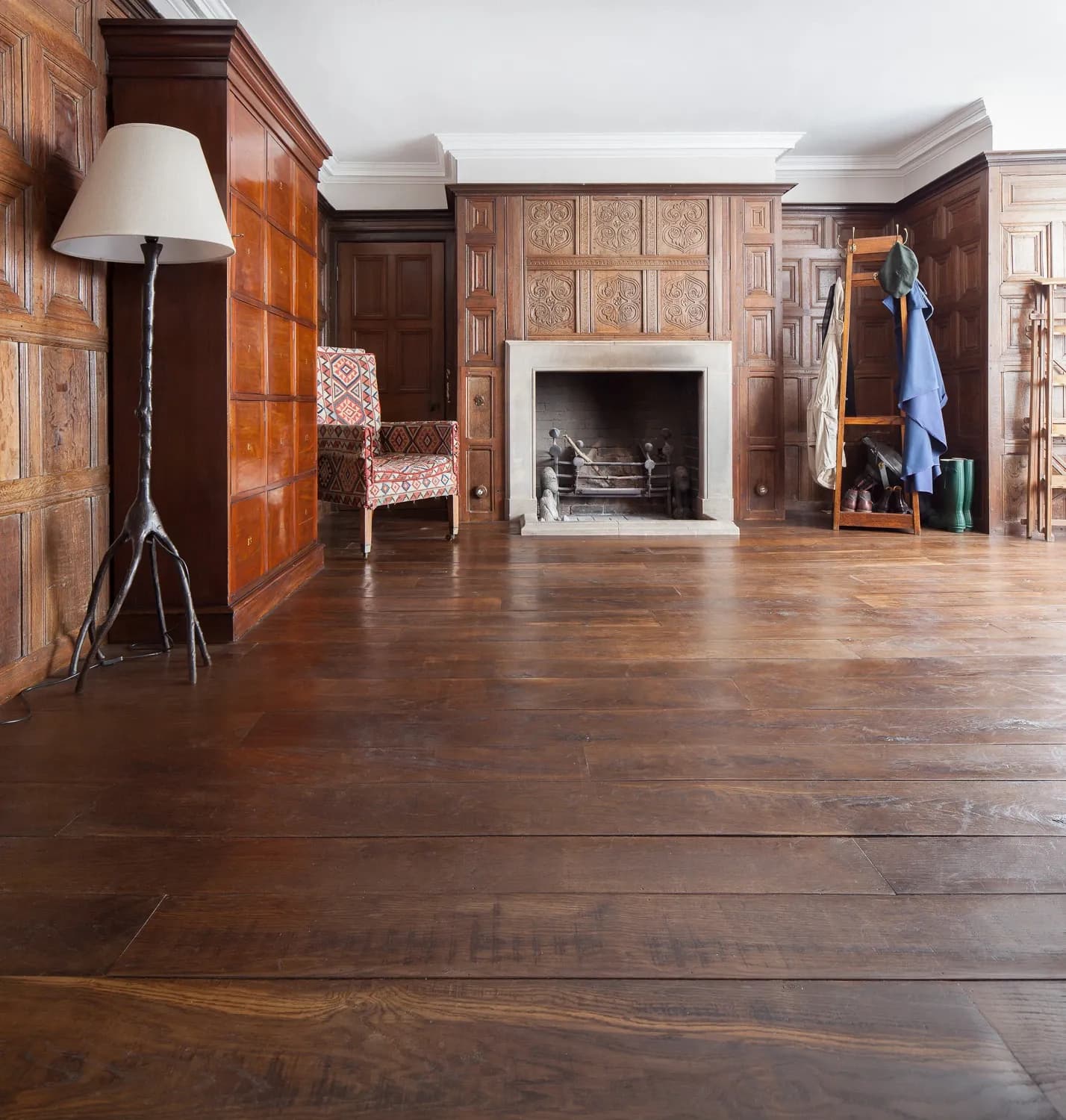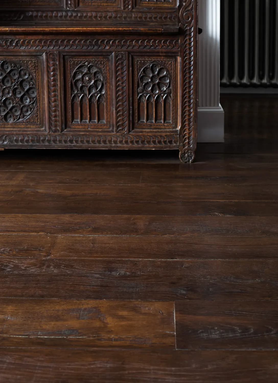The brief was clear: preserve the home’s antique, warm, colonial character without disrupting its quiet dignity. Our Hand-Made French Oak became the natural answer — a material shaped by hand, created to blend rather than compete. Available in plank or parquet, from 10–35 mm, it serves not only as flooring but extends to stair components, cladding, shelving and bespoke joinery. A single species, worked with patience, allowed every new element to feel as though it had always belonged.
