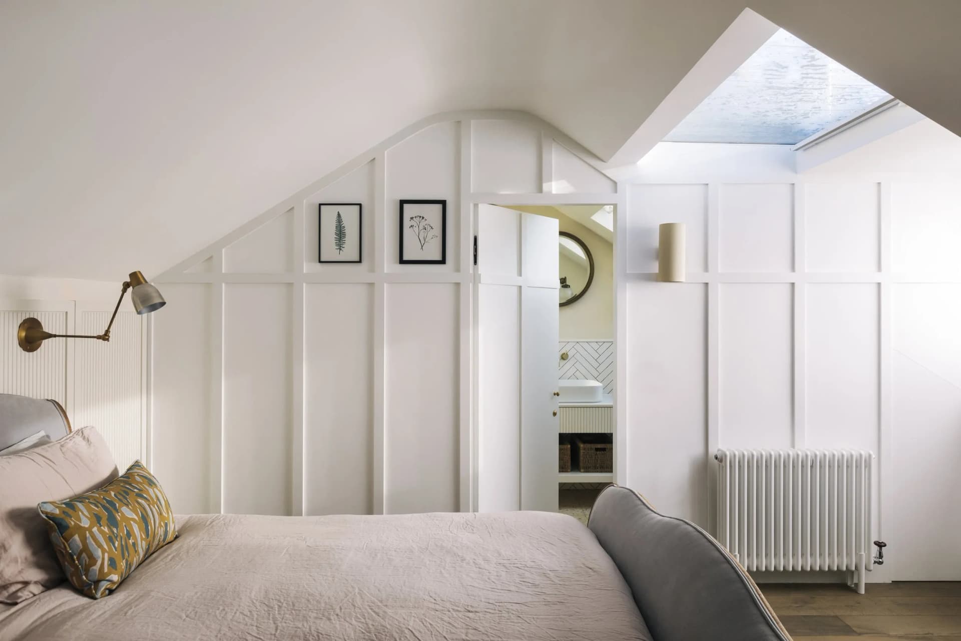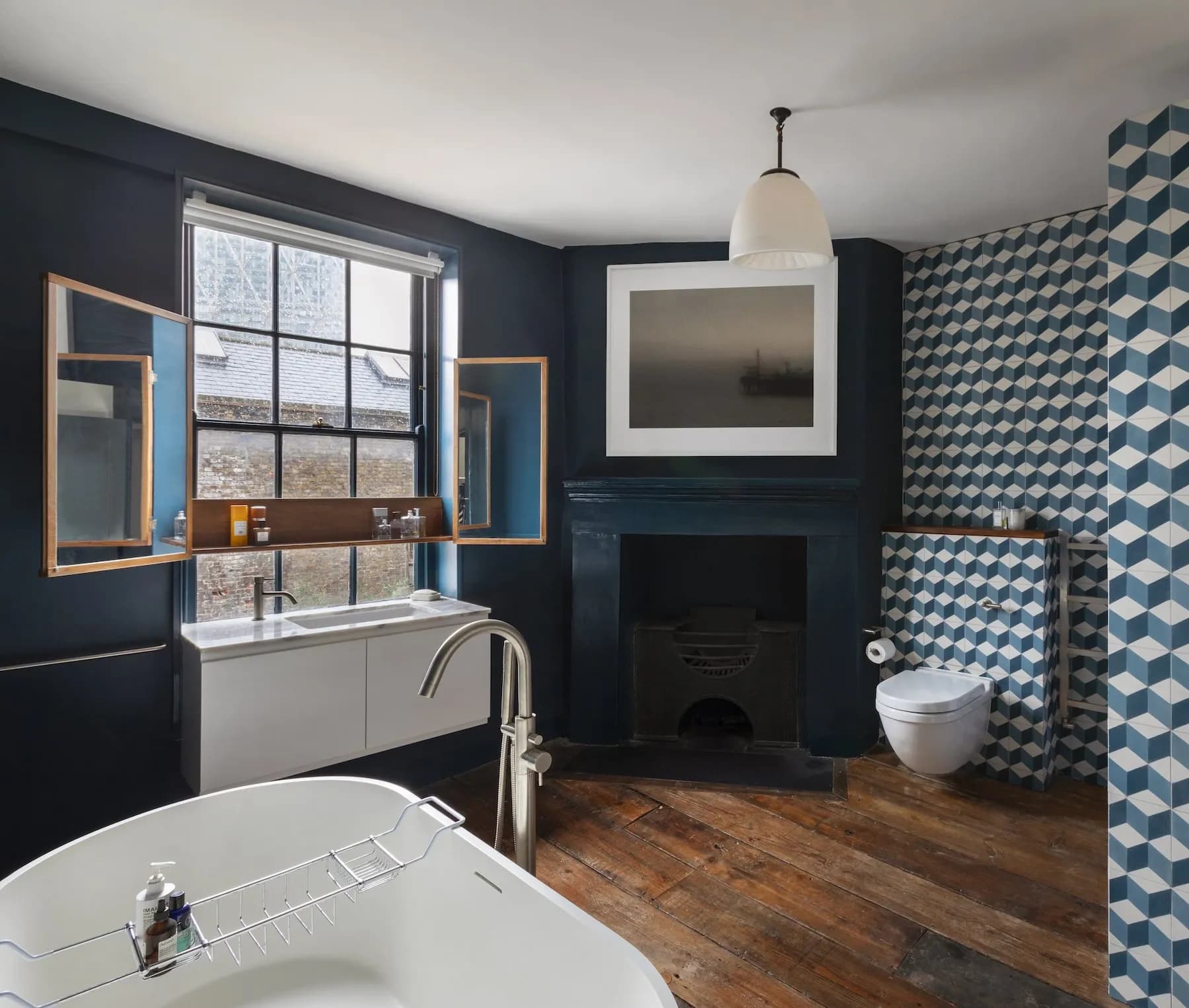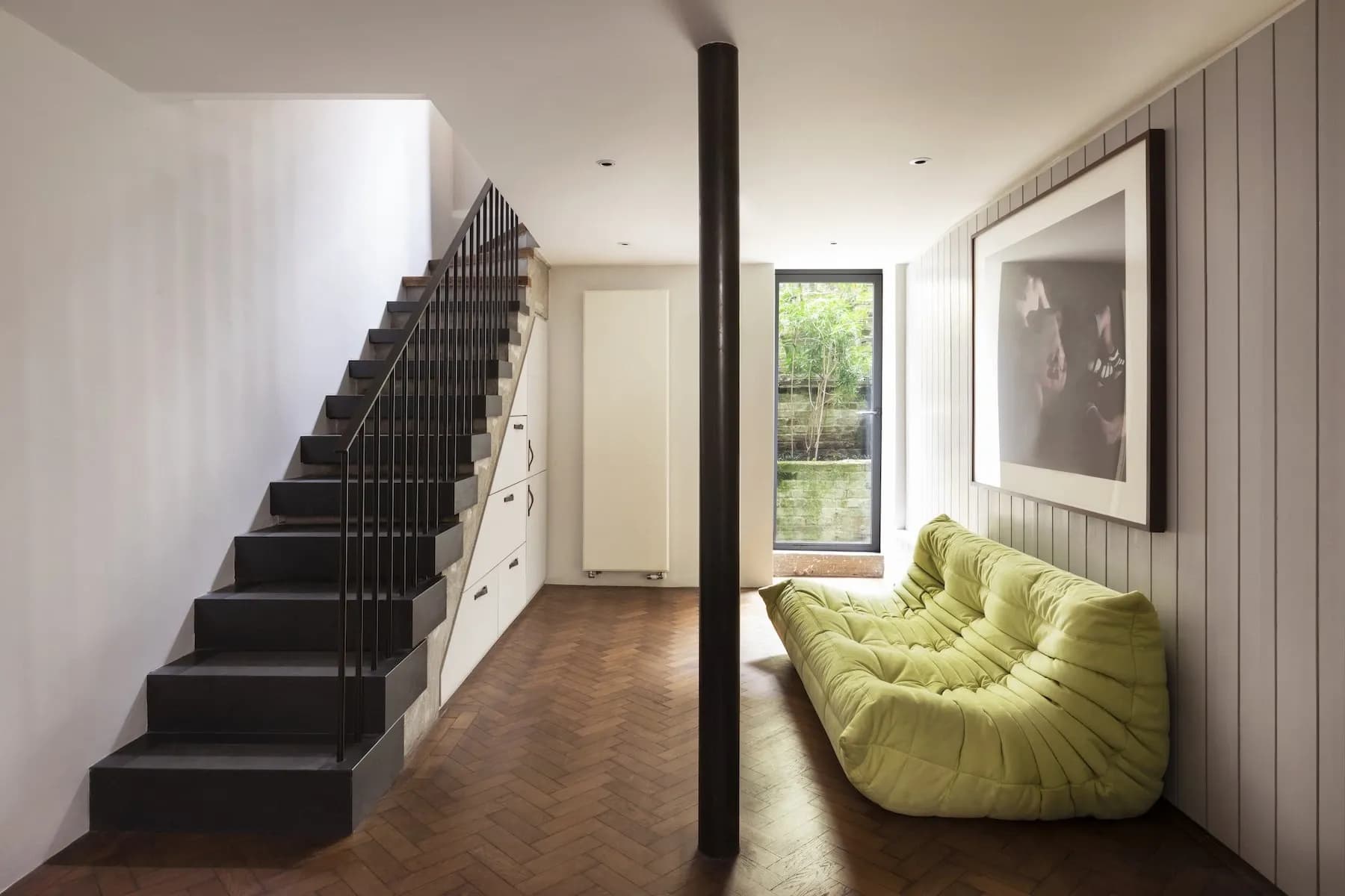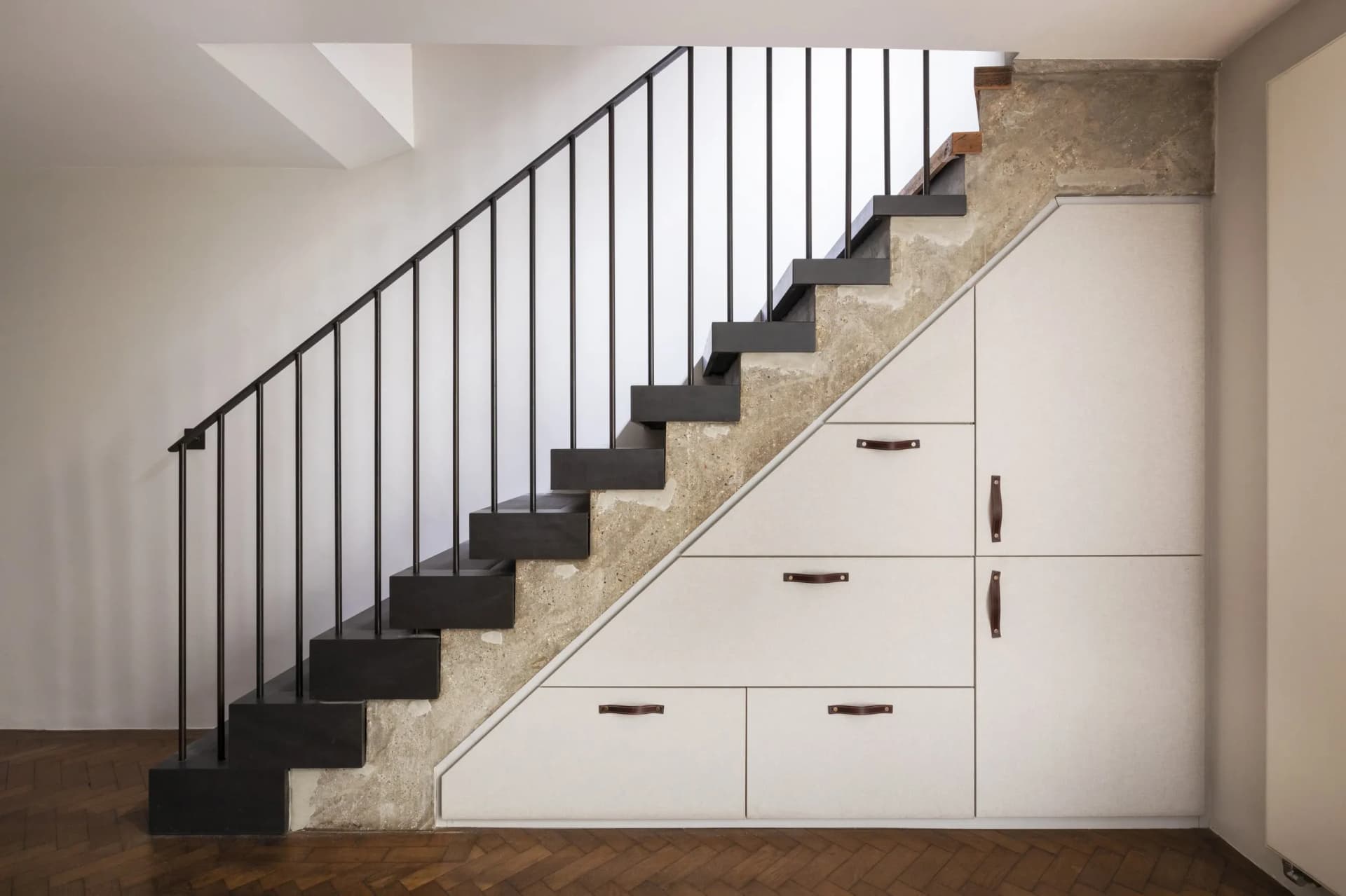 This 18th-century French Huguenot house in Spitalfields retains a remarkable suite of original features — timber partitions with panelling, refined cornicing, and ornate architraves — all protected within its Grade II listing. The client’s brief put preservation first: every period element was to remain untouched, and any new intervention would be treated as a removable piece of “furniture” rather than an alteration to the fabric. Two kitchen elements were introduced with the restraint of a chest of drawers — freestanding, minimal, and fully reversible — ensuring that the new reads as a gentle guest within a historic structure rather than an imposition upon it.